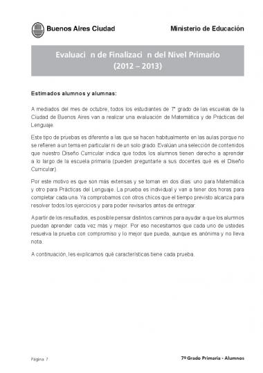 Evaluación de finalización del Nivel Primario (2012-2013) Material destinado...