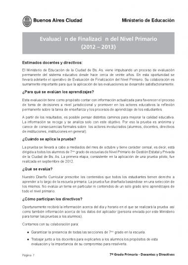 Evaluación de finalización del Nivel Primario (2012-2013) Material destinado...