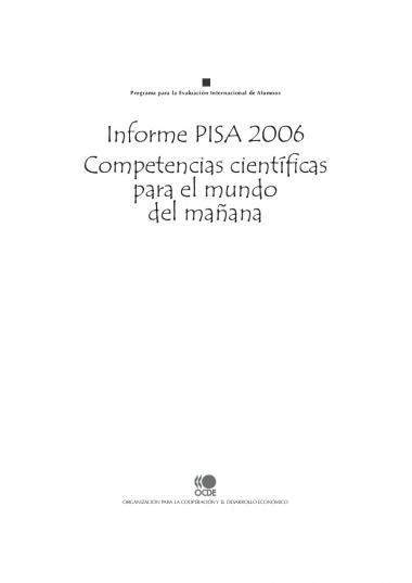 PISA 2006. Informe Competencias científicas para el mundo del mañana. Programa para la Evaluación Internacional de Alumnos. OCDE
